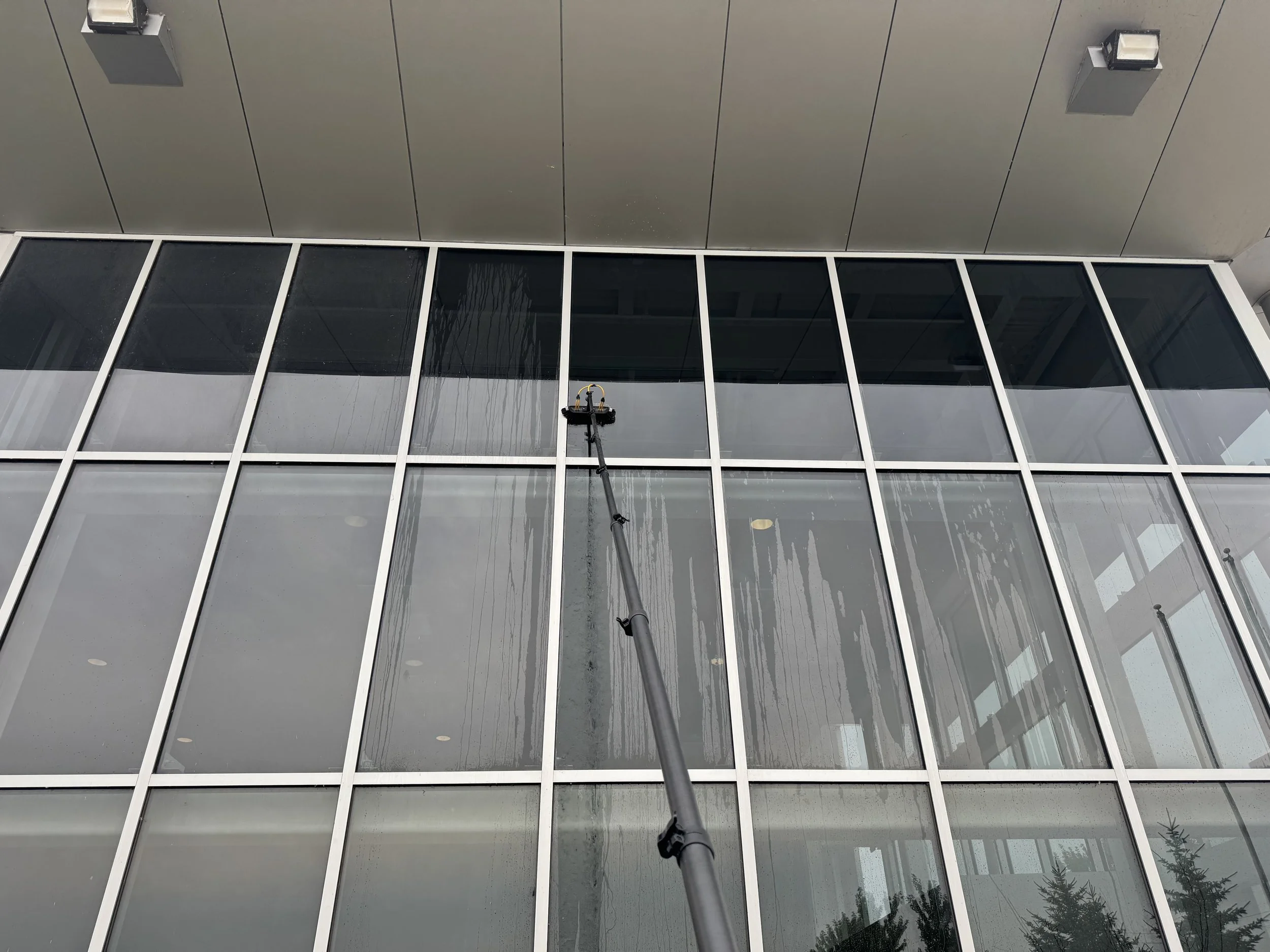 Interior windows are cleaned using traditional methods for a flawless finish. For exterior glass, when suitable, we offer pure-water window cleaning using a multi-stage filtration system and water-fed poles to safely clean upper-level windows without ladders or harsh chemicals.